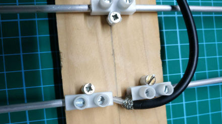 Una vez finalizada la antena conectaremos el cable. Para ello simplemente hay que separar el vivo de la masa y atornillarlos cada uno separados en una regleta.