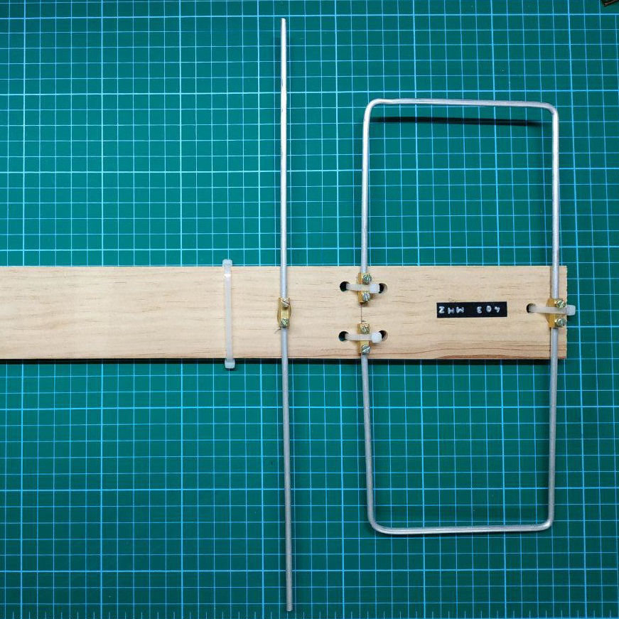 Una vez distribuidos los elementos cortar la varilla del reflector (360 mm). Si usamos dos varillas de 180 mm revisar cuando estén fijadas que la distancia de punta a punta siga siendo 360 mm y que sea recta.